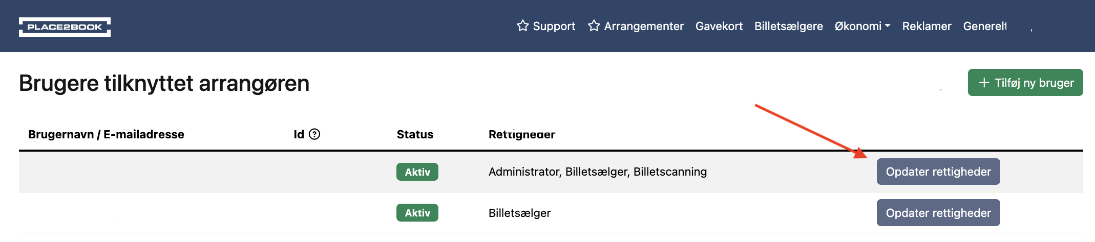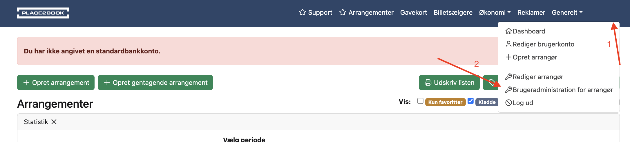 Bemærk: Medarbejdere i Place2Book tilføjer som udgangspunkt ikke nye brugere til en arrangør. Dette skal gøres af en administrator for arrangøren.