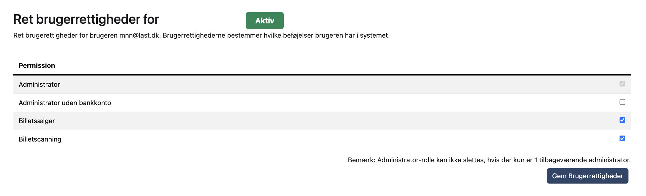 Her kan du ændre rettighederne for de tilknyttede brugere.