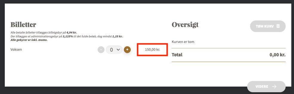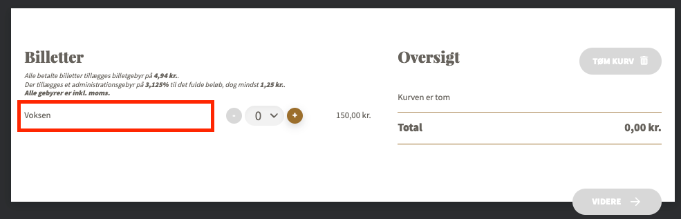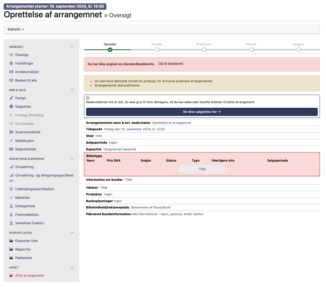 For at arrangementet kan gå i salg, skal der oprettes en billettype.
