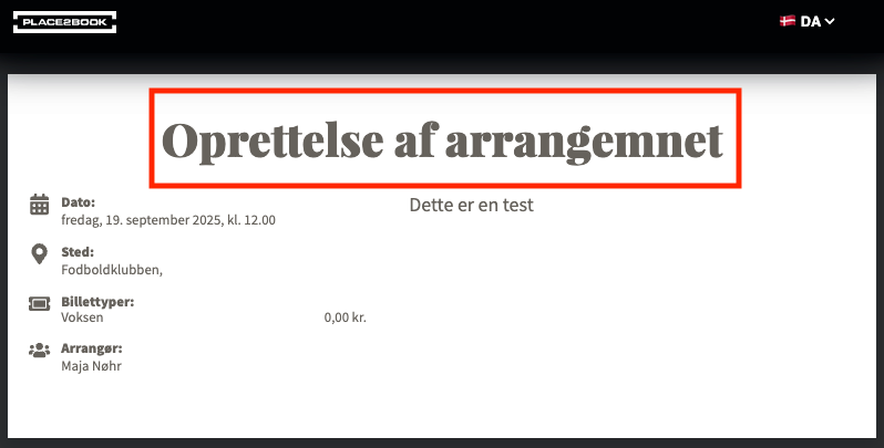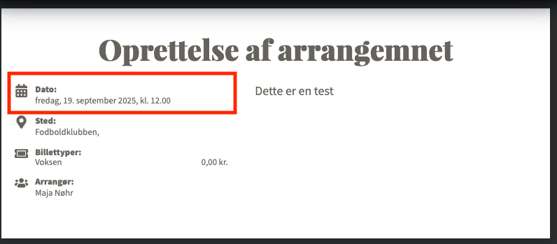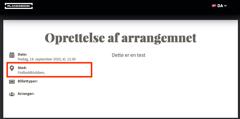 - Passivt arrangement - Som er et arrangement, hvor der ikke er et billetsalg. Det betyder, der kan oprettes et arrangement, som kun indeholder informationer til kunderne.
