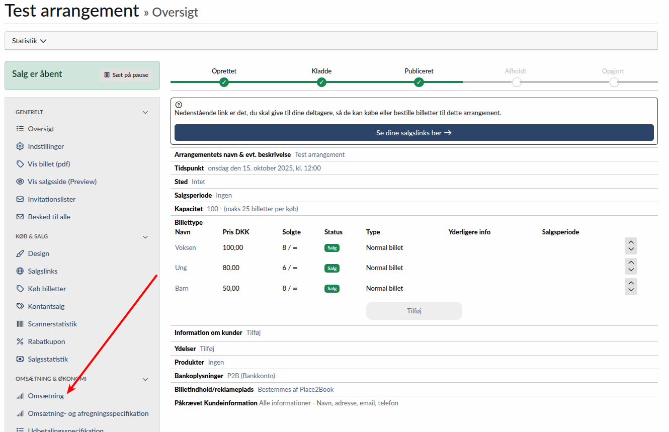 Herefter kan du klikke på "Omsætning" i menuen til venstre: